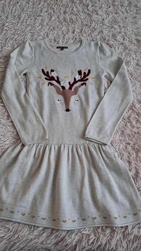 Сукня для дівчинки з оригінальним малюнком. Містить в складі вовну та альпаку. Довжина - 75 см., плечі - 31 см., рукав - 55 см., ПОГ - 35 см.