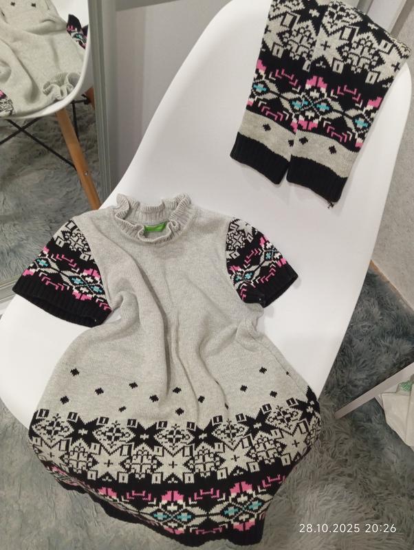 Платье вязаное для девочки. Рукава одеваются отдельно. можно надевать на лонг или гольфик. Около 9 лет. состояние идеальное. Качество супер. 90% коттон, 10% спандекс. Без катышков 100%. длина 60см, подмышками 37, длина съемных рукавов 33.