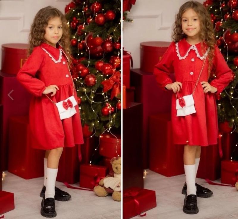 Гарна сукня в комплекті з сумочкою Тканина замш Спереду ґудзики функціональні Комірець прикрашено мереживом ЯКІСТЬ ЧУДОВА! Довжина плаття/рукав/пог 110 р. - 58/38/31 кід.