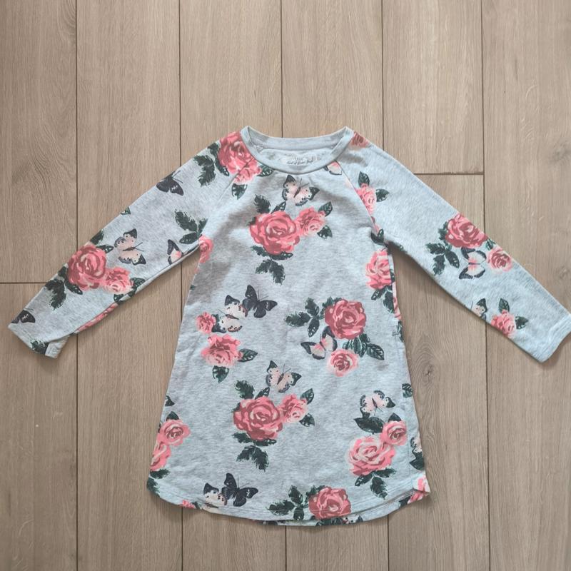 Гарна коттонова сукня для дівчинки двунитка з квітковим принтом, ідеально підходить для осінньо-зимового періоду, стан чудовий розмір від 4-6 рочків