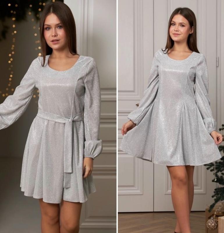 Красива сукня тканина диско з напиленням блискіток по спинці застібається на змійку ЯКІСТЬ ЧУДОВА! Довжина/ПОГ/рукав від плеча 152-76/38/53 кід. Р.
