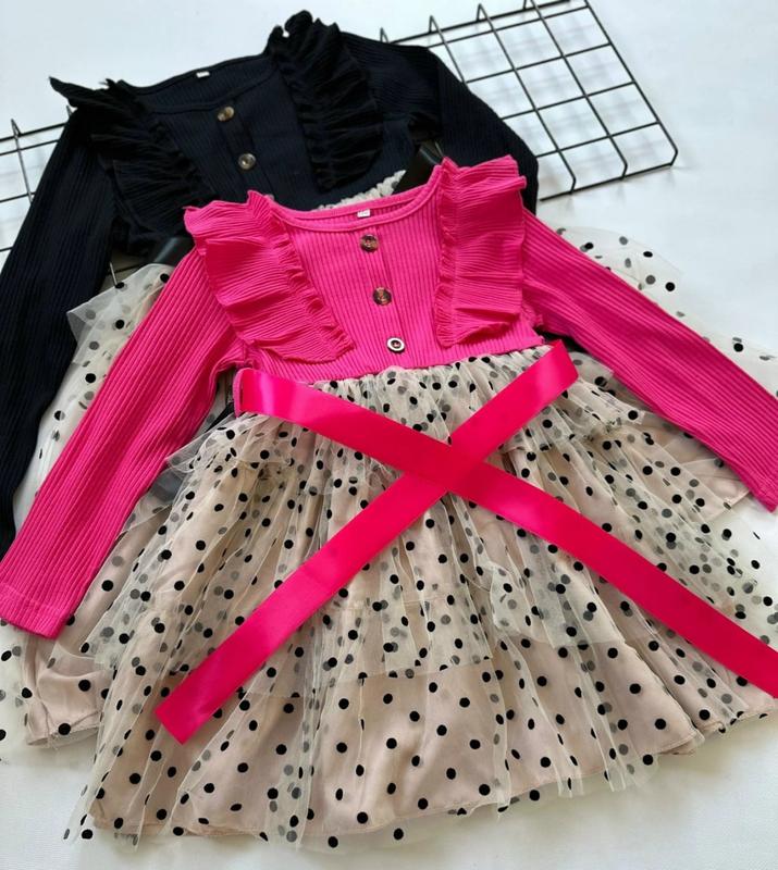 П 🎯В НАЯВНОСТІ кид ✍Невероятно стильное и красивое платье для маленьких модниц! 🖤Платье выглядит великолепно на ребенке, подчеркивая его нежность и игривость. 🖤 Верх выполнен из комфортного рубчика из хлопка, что обеспечивает мягкость и удобство. 🖤Нижняя часть платья выполнена из элегантной евросетки в сочетании с атласной подкладкой, придающей образу роскошный вид. 🖤Детали, как яркий атласный пояс и элементы кружева, делают платье еще более впечатляющим. 🖤Идеальна для праздничных событий, она дарит неповторимый стиль и комфорт!" 🚀Доставка 1-2 дня Размер 100(5 шт) 110(4 шт) 120(5 шт) 130(2 шт) Замеры 100-Длина 51 см Рукав от плеча 34 см пояс 21*2 см 110-Длина 53 см Рукав от плеча 35 см пояс 22*2 см 120-Длина 59 см Рукав от плеча 39 см пояс 22*2 см 130-Длина 63 см Рукав от плеча 42 см пояс 23*2 см Замеры сделаны одной ростовки Допустима похибка +-1-2 см