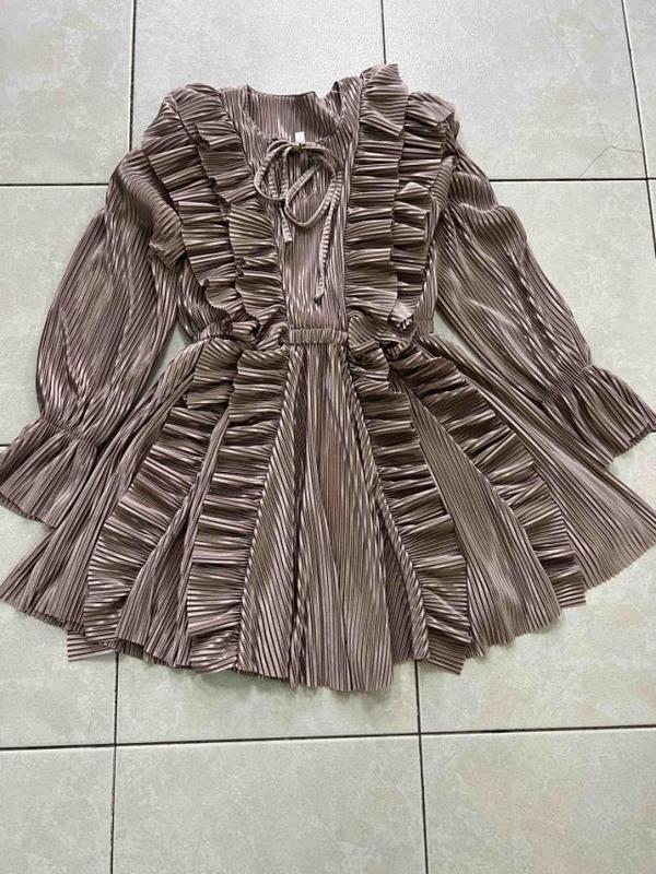 Нарядна сукня Неймовірно ніжна та легка. В поясі під резинку. Тканина - плісе нейлон стрейч. Заміри: 134 довжина - 67см, напівобхват грудей - 39см, рукав від плеча - 50см. 146 довжина - 73см, напівобхват грудей - 43см, рукав від плеча - 54см. 152 довжина - 75см, напівобхват грудей - 45см, рукав від плеча - 56см. міс