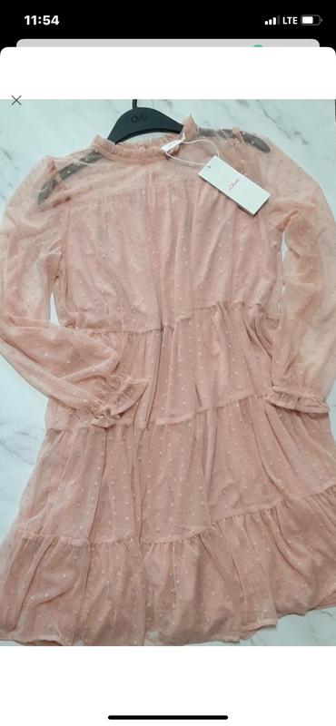 Сукня на дівчинку, від ТМ S. OLIVER (Німеччина), у пудровому кольорі, понизу віскоза, сверху м'якенька сіточка, з довгим рукавом Склад тканини: віскоза 95 %, еластан 5 % Розмір 146 см. Довжина виробу 77 см., довжина рукава 55 см., ширина під грудьми 42 см.
