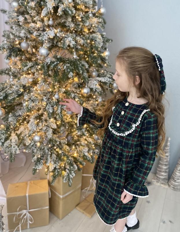 Новорічна сукня зелена нарядна тепле плаття 6-7 років сукня в клітинку