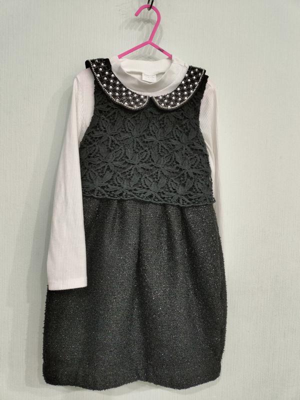В дуже гарному стані святкова сукня на дівчинку 6-7років. Довжина від плеча до низу 65см, напівоб'єм грудей 30см, талія 30см.
