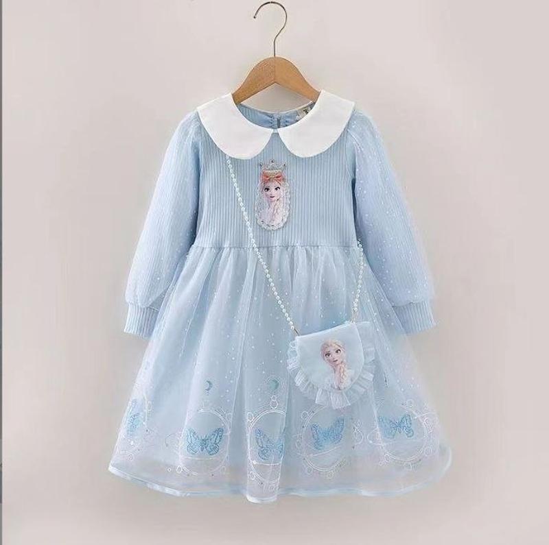 🎯 В НАЯВНОСТИ Дроп \Опт 795 грн ✍ Стильное платье “Эльза” для маленькой принцессы ✨ 🖤Нежное голубое платье в сказочном стиле 🖤Верх - хлопок, мягкая и приятная к телу, хорошо тянется. 🖤Рукава украшены фатином, 🖤Оригинальный воротничок белого цвета - стильный акцент. 🖤Низ - два слоя фатина с красивым узором 🖤Подкладка - 100% хлопок, для комфортной носки. 🖤Сумочка в комплекте с тем же принтом Размер 100(3 шт) 110(5 шт) 120(3 шт) 130(3 шт) 100-Длина 54 см Рукав от плеча 33 см пояс 29*2 см 110-Длина 57 см Рукав от плеча 35 см пояс 29*2 см 120-Длина 60 см Рукав от плеча 38 см пояс 30*2 см 130-Длина 62 см Рукав от плеча 39 см пояс 33*2 см Замеры сделаны одной ростовки Допустима похибка +-1-2 см