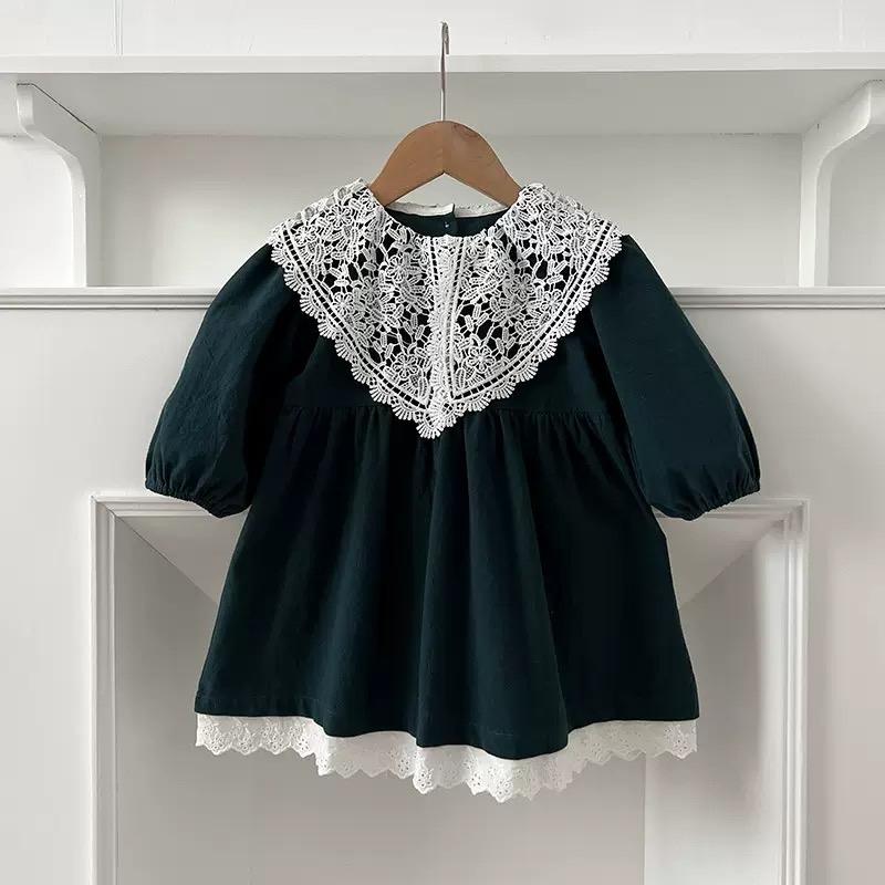 🌀 В наличии очень красивое платье с кружевным воротничком. 🌀 Материал коттон. Перчатка 3/4. Сзади застежка на пуговицы. Рекомендуемый заказ. Качество супер. Доступные размеры: 100-4 шт 110-5 шт 120-4 шт 130-3 шт Замеры: 100-Длина 60, ширина 34, рукав 29. 110-Длина 65, ширина 35, рукав 31. 120-Длина 68, ширина 37, рукав 34. 130-Длина 70, ширина 39, рукав 36.