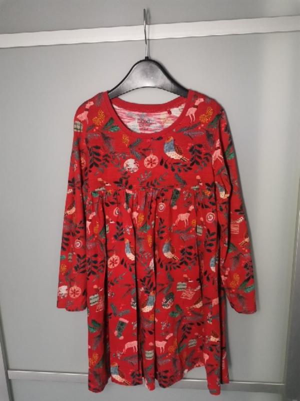 Платье next с новогодним принтом, свободного кроя, с завышенной талией. На 6-7 лет.