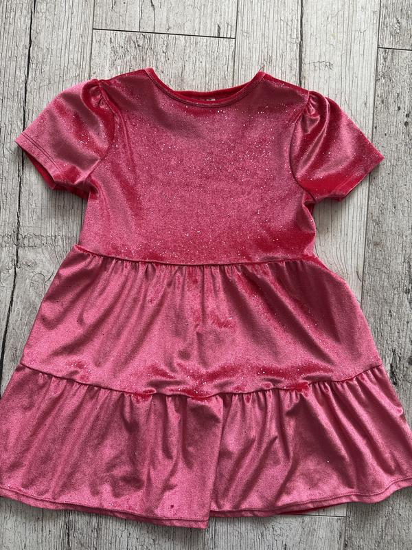 В ідеальному стані святкова сукня з блискітками відомого бренду. Вільного крою , р. 6-7 років. Модна вдягати зверху на водолазочку. Заміри: Довжина: 60 Пог 32