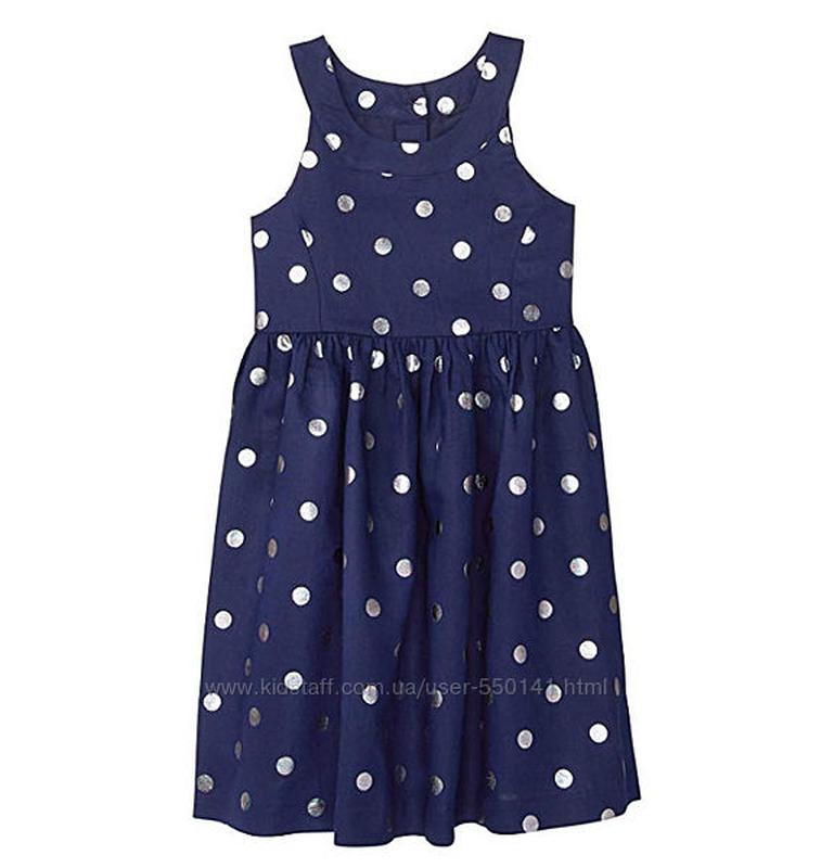Нова святкова сукня Gymboree з Америки, для дівчинки приблизно 10 років, зріст 135-145 см. Тканина натуральна, 55% льону, 45% бавовна. Підкладка з поліестеру. Ззаду щастібається на нудзики. Заміри: довжина 72 см, талія 31 см (має сідати вільно).