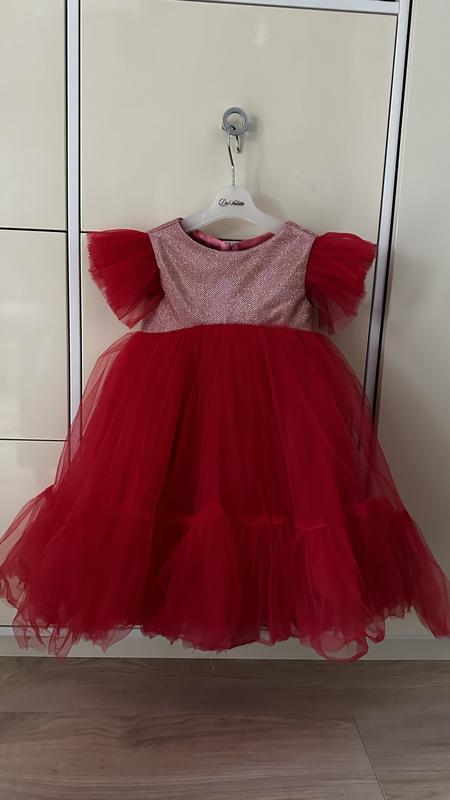 Святкова пишна сукня Цукерочка в яскравому червоному кольорі , стан ідеальний , орієнтовно на зріст 110 , заміри додала на фото !