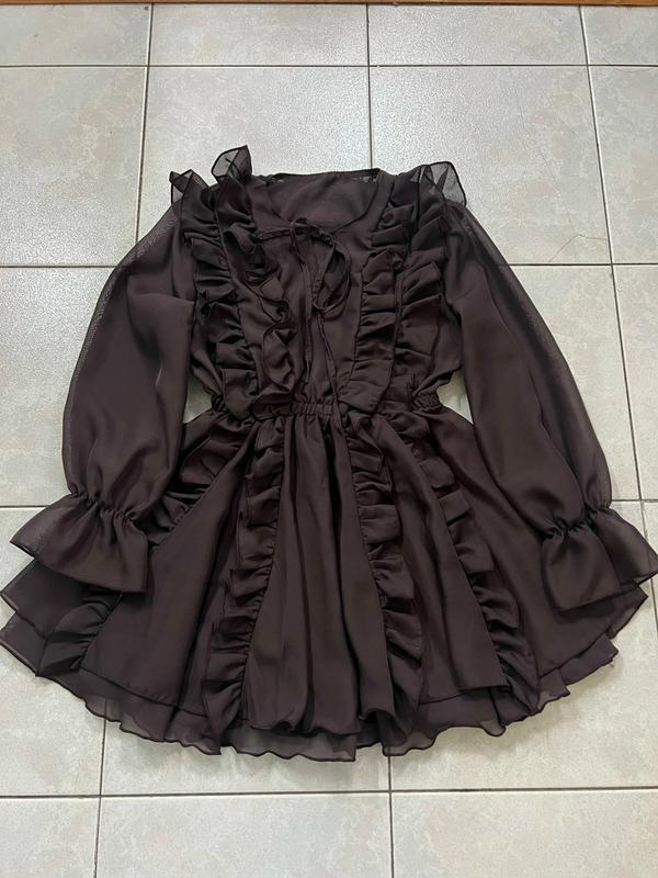 Неймовірно гарна сукня Тканина: шифон Колір "шоколад" ЧУДОВА ЯКІСТЬ! довж/рукав від плеча до кінця/пог 140р -67/50/39 146р -70/52/40 152р -74/53/41 158р -78/55/43 164р -81/58/47 кід+