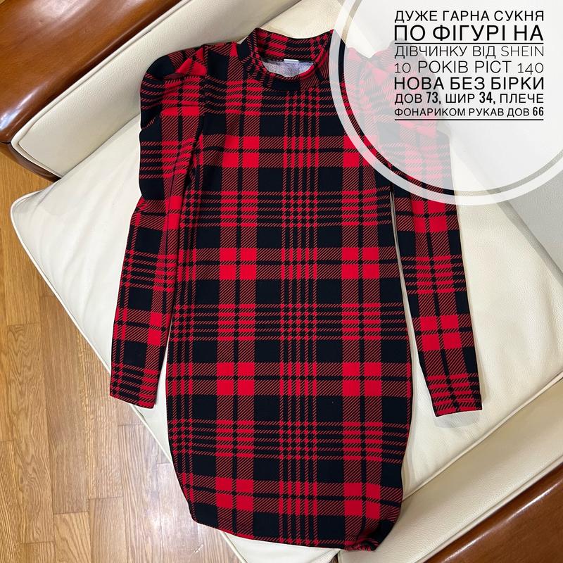 Дуже гарна сукня по фігурі на дівчинку від Shein 10 років ріст 140 нова без бірки дов 73, шир 34, плече фонариком рукав дов 66