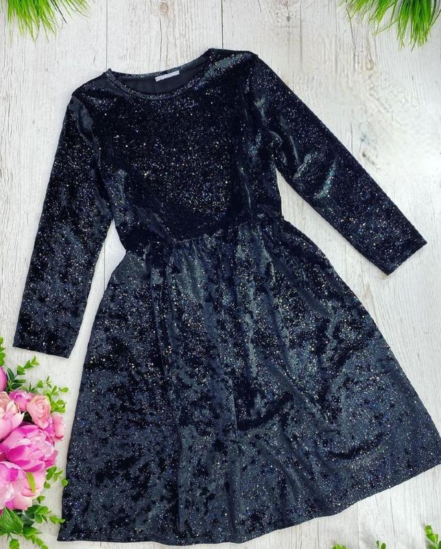 красива святкова сукня сукнячорного кольору з блистками Велюрова сукня на 11л Довжина 81см ширина З9см рукав 42+7,5см Блищить, в ідеальному стані