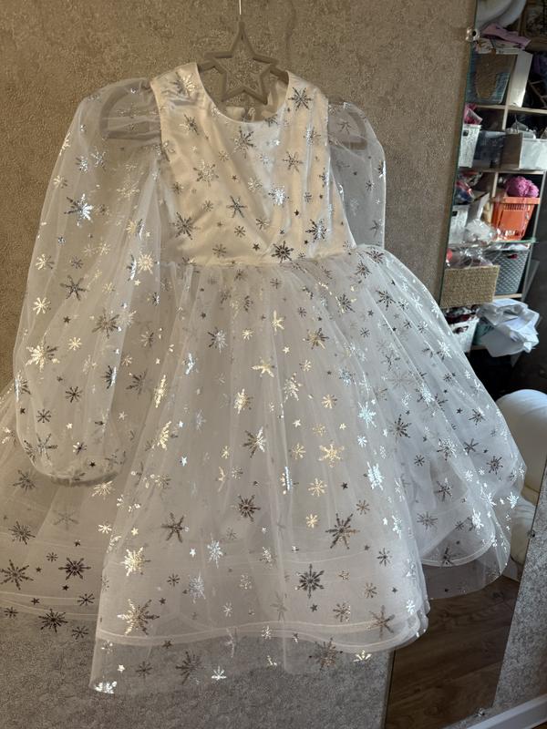 Новорічна біла пишна сукня сніжинки срібне напилення