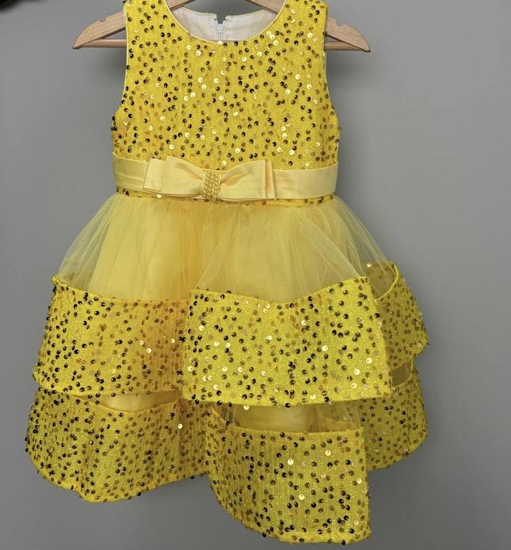 Прикрашена пайетками ,які дуже гарно виблискують Тканина -атлас +багатошаровий фатин Підкладка -бавовна Позаду застібається на блискавку . 100 - довжина 55 см, шир 27 см 110 - довжина 58 см, шир 29 см 120 - довжина 61 см, шир 29 см 130 - довжина 65 см, шир 31 см