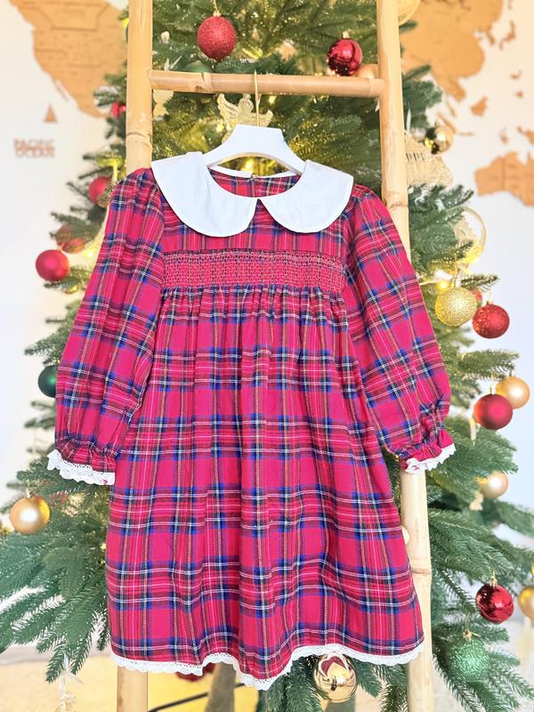 Плаття дитяче сукня новорічна святкова червона в клітинку з білим коміром утеплена
