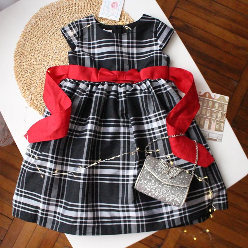 Пишна святкова сукня в клітинку з акцентним поясом 3-4 роки