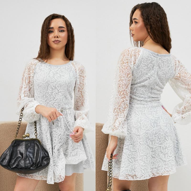 Неймовірна мережевна сукня на підкладці із мерехтливого трикотажу диско у комплекті поясок шнурок із металевим декорованим фіксатором. Тканина-мереживо, трикотаж диско із срібним напиленням. Рекомендую! зріст/довжина/пог/рукав від горловини 140-146/70/33/53 146-152/73/34/56 152-158/76/36/59 158-164/79/37/62 164-170/83/38/65 і