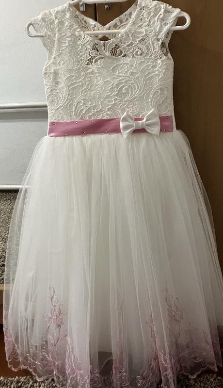 Плаття для дівчинки на ріст 140-146 см Колір Шампань з рожевим. ПОГ 33 см ПОТ 34 см Довжина 98 см. Одягалося один раз.