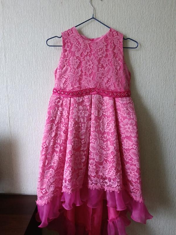 святкова сукня рожевого кольору зі шлейфом на зріст 134-146, стан нової речі , пригадали з розміром , вдіта тільки для примірки, гарно сідає по фігурі