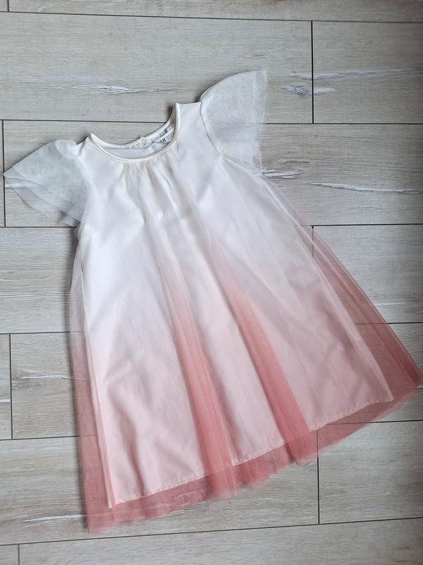 8-9 років,134 см,довжина 73 см,ширина 36 см,ніжна фатинова сукня на дівчинку,дуже гарно переливається,стан відмінний але є нюансик,спереду на фатині малюсенька дірочка( останнє фото),в носці її непомітно