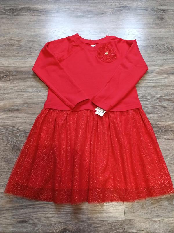 Чарівна святкова сукня від відомого бренду Carters для особливих моментів. Особливості: • Верх: м'який махровий матеріал (100% бавовна) • Спідниця: пишний фатин з блискітками • Підкладка: легкий бавовняний трикотаж • Декоративний елемент на грудях з блискітками Розміри: • Розмір: 8 років (ріст 131-137 см), підійде і на ріст 128 см • Довжина: 72 см • Обхват грудей: 38 см • Довжина рукава від горловини: 53 см Матеріал: бавовна, фатин Колір: червоний Стан: новий Бренд: Carters Ідеально підходить для свят, фотосесій та особливих подій. Якісне пошиття та м'які матеріали забезпечують комфорт протягом дня.