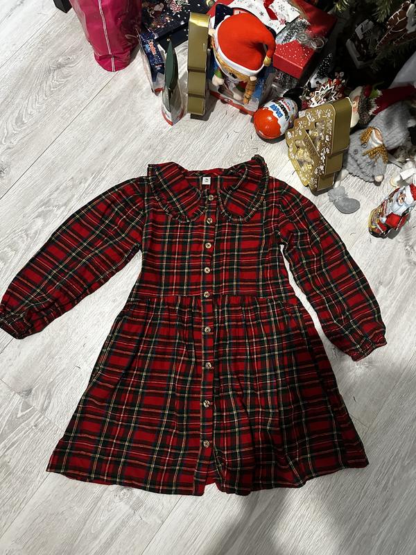 Красива сукня як в школу так і на вихід, на зріст 140 -146 см Дуже приємна до тіла, котон, широкий актуальний рукав з резинкою , є актуальний ворот, і ці деталі- ґудзики з червоною ниточкою це вау! Стан ідеал, донька одягала 1 раз
