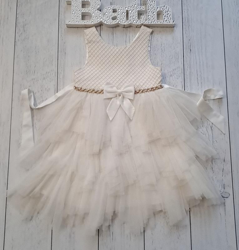 Це нове біле ошатне плаття для дівчинки, ідеально підходить для особливих випадків. Дизайн верху: Ліф сукні має безрукавний дизайн та прикрашений стьобаним візерунком "ананас" або "луска" із золотими акцентами/нитками. На талії сукня має тонкий декоративний пояс із золотистими блискітками або стразами, а спереду розташований білий бант. Пишна ярусна спідниця складається з кількох шарів фатину, що створює об'ємний, повітряний ефект.Ззаду сукня застібається на блискавку . Ця сукня поєднує в собі класичну елегантність із грайливим шармом, що робить її ідеальним вибором для незабутніх моментів вашої дитини. Нова але без паперової бірки. Тканина не тягнеться. На 5-6 років. Заміри ⤵️⤵️⤵️ Довжина-68см Пог-31см Пот-30см ☝️☝️☝️☝️ увага!!!! Якщо у Вас упереджене ставлення до секонду та запаху який присутній дані категорії товару, то прошу УТРИМАТИСЯ від покупки. Дякую. Умови ⤵️ Пересилаю новою та укрпоштою. Повернення та обмін відсутній ( або по домовленості) Всі питання вирішуйте до відправки товару. Наложенний платіж є, по ціні перевізника за доставку в обидві сторони . Нова пошта 150 грн. Укрпоштою 50 грн. Скидки від 2 лотів. Відправка кожного дня . Субота та неділя- відправки уточнюйте.Яскрава обновочка кожного тижня. Обожнюю своїх покупців та свою роботу. Всім миру та добра.
