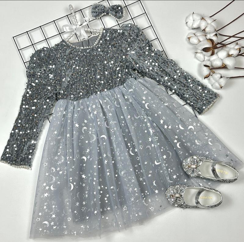 🦋Святкова сукня. 🧷 Верх паєтки + хб підкладка. 🧷 Низ: 3 прошарки фатина + хб під'юбник. Позаду замочок. 🧷 Замір рукава від плеча. 🧷 Позаду в поясі резинка 🧷 Супер якість. Рекомендую !🔥 бейбіленд В наявності: р.110см. - довж. 64см., шир. 31см., рукав 41см. (2шт.) р.120см. - довж. 67см., шир. 32см., рукав 44см. (3шт.) р.130см. - довж. 70см., шир. 33см., рукав 47см. (2шт.) р.140см. - довж. 75см., шир. 35см., рукав 50см. (1шт.)