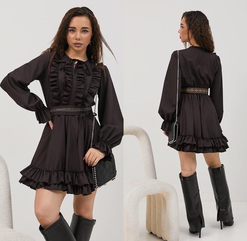 через кнопку купити тільки повна оплата!!! арт 7189 Ефектна сукня з пояском (фото в коментаріях) в талії та манжети під резинку тканина щільний супер софт СУПЕР ЯКІСТЬ! зріст/довжина/пог/рукав від горловини похибка+-2см 140-146/72/41/58-1шт 152-158/76/43/64-1шт Тан