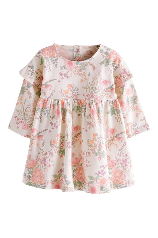 Сукня для дівчинки Next. Розмір: 1,5–2 роки (92 см). Ніжна сукня з квітковим принтом у світлих пастельних відтінках. Модель із завищеною талією та вільним кроєм, що забезпечує комфорт під час носіння. Довгі рукави з декоративною оборкою на плечах. Круглий виріз горловини, застібка ззаду. Матеріал: 100% бавовна. Стан: ідеальний. Підійде для повсякденного носіння, прогулянок, святкових подій та фотосесій.