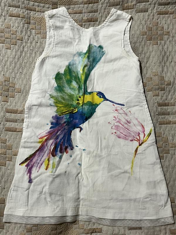 Сукня вільного А-силуету з калібрі в акварельному стилі з карманами. Підійде для літніх прогулянок та святкових подій.