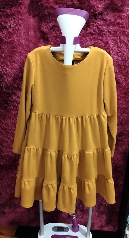 Сукенка пошиву рюшами ,колір гірчиця,тепла ( осінь/зима/весна)Одягнена два рази ( одне прання)Розмір 40-42