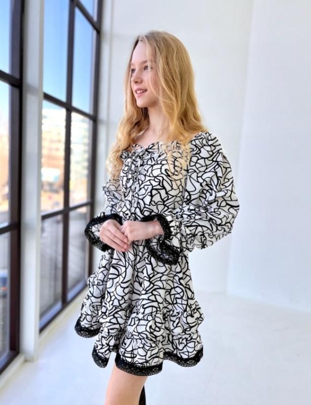 через кнопку купити тільки повна оплата!!! Стильна сукня для дівчат з мереживом Пояс на резинці. Спинка зібрана під резиночку. Тканина - супер софт. Заміри: 152 довжина від плеча - 71см, напівобхват грудей - 35см, рукав - 55см. 158 довжина від плеча - 75см, напівобхват грудей - 36см, рукав - 58см. 170 довжина від плеча - 83см, напівобхват грудей - 38см, рукав - 64см. Мс