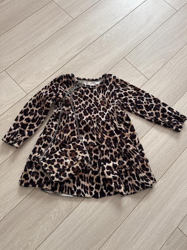 Леопардова сукня із трендовий сумкою на кнопці для дівчинки 4-5років