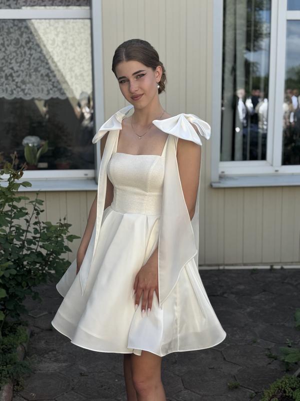 Біла святкова сукня з блискітками на корсеті Продаю білу святкову сукню. Одягалась один раз, стан ідеальний, без дефектів. Корсетний верх прикрашений ніжними блискітками, які красиво переливаються на світлі. Спідниця пишна, добре тримає форму. Оригінальні банти на плечах додають образу вишуканості та ніжності. Чудово підійде для випускного, розпису, фотосесії або святкової події. Причина продажу: не актуальна Відправка поштою.