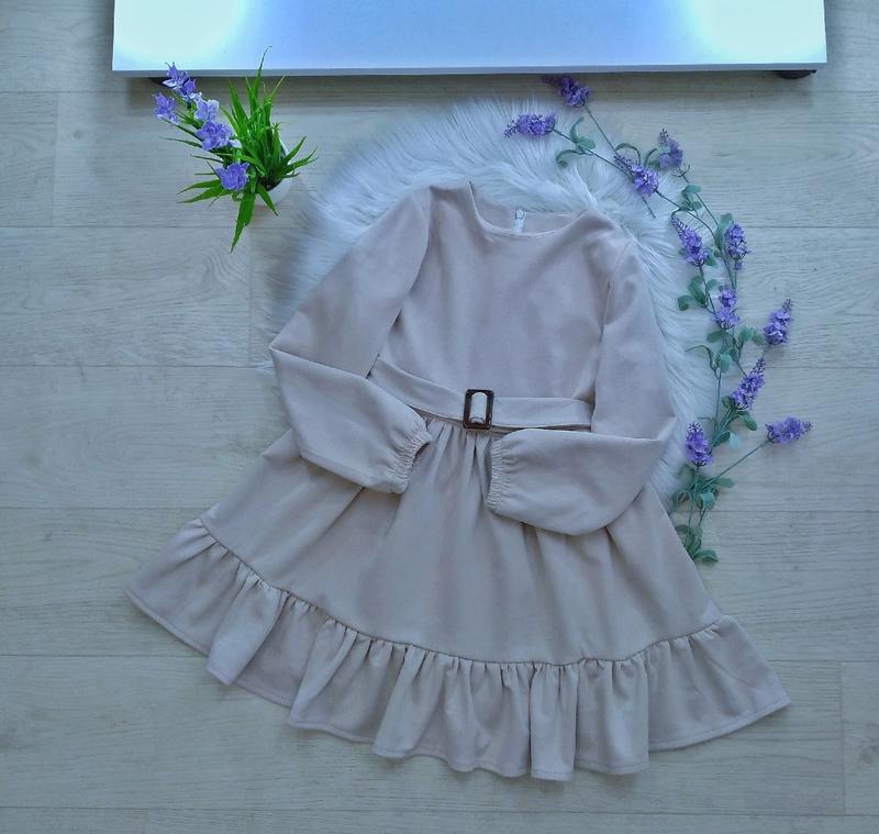 через кнопку купити тільки повна оплата!!!! Стильна сукня з пишною спідницею 💥💥🌸🌸🌸 Позаду є блискавка ,та резинка на рукавах , талія ругулюється поясом який йде в комплекті ,дуже якісна та щільна тканина, приємна до тіла 🥰🥰🥰🤩 Тканина: замш💫 Виробник: Україна 🇺🇦 р.134-1шт ЗАМІРИ +/-1-2см!!! ▪р.134 довжина 69см/рукав від плечевого шва 47см /ПОГ 33см