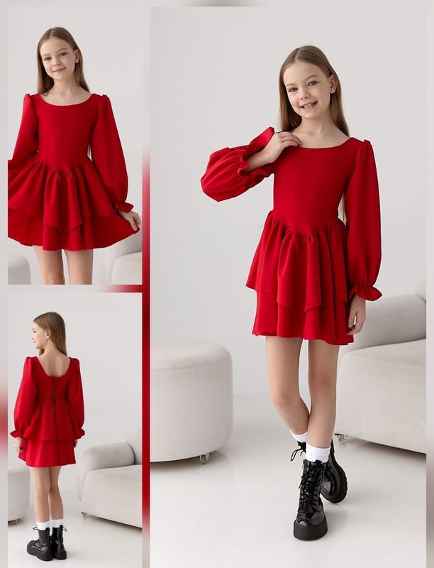 через кнопку купити тільки повна оплата!!! Корсетна сукня, що підкреслює фігурку ❤️ Елегантна посадка красиво формує силует, а спідниця з воланами додає легкості та особливого шарму ✨ ▫️ Тканина: костюмка Барбі ▫️ Корсетний верх ▫️ Об’ємні рукави — стильний акцент образу ▫️ Спідниця з воланами ▫️ Ідеальна для свят, фотосесій та особливих подій ▫️ Виробник: Україна 🇺🇦 р.146-1шт р.152-1шт р.158-1шт ЗАМІРИ ⤵️ +/- 1-2см!!! р.146- довжина сукні від плеча 67см/ рукав від плеча 50см/ ПОГ 35см/ ширина талії 35см/ довжина спідниці по боковому шву 42см р.152- довжина сукні від плеча 72см/ рукав від плеча 52см/ ПОГ 37см/ ширина талії 37см/ довжина спідниці по боковому шву 43см р.158- довжина сукні від плеча 75см/ рукав від плеча 56см/ ПОГ 39см/ ширина талії 39см/ довжина спідниці по боковому шву 44см Кр