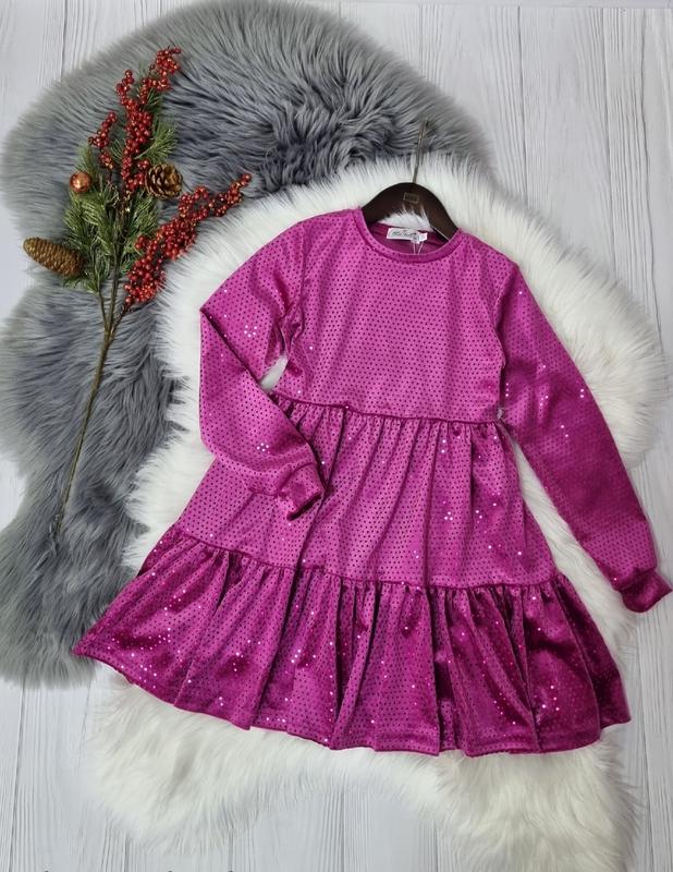 через кнопку купити тільки повна оплата!!! Чудове платтячко для дівчинки королівський велюр з паєткою приємне до тіла якість люкс 140(1 шт) - пог 36 см, довжина 71 см, рукав 49 см +-2см Греб