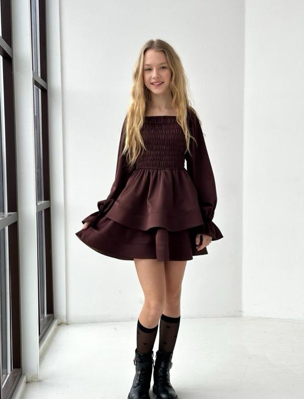 через кнопку купити тільки повна оплата!!! Шикарна сукня Florence Тканина- атлас. Колір - шоколад. 164 довжина від плеча - 77см, напівобхват грудей - тянеться до 44см, рукав - 70см. Мс
