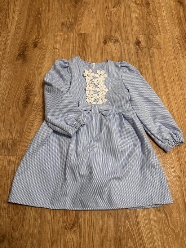 Святкова блакитна сукня для дівчинки. На 5-6 років. Стан ідеальний. Замочок працює. Заміри по фото