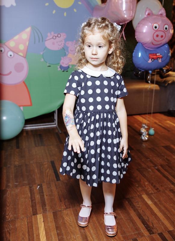 темно-синя сукня в білий горошок, для дівчинки 4-5 років