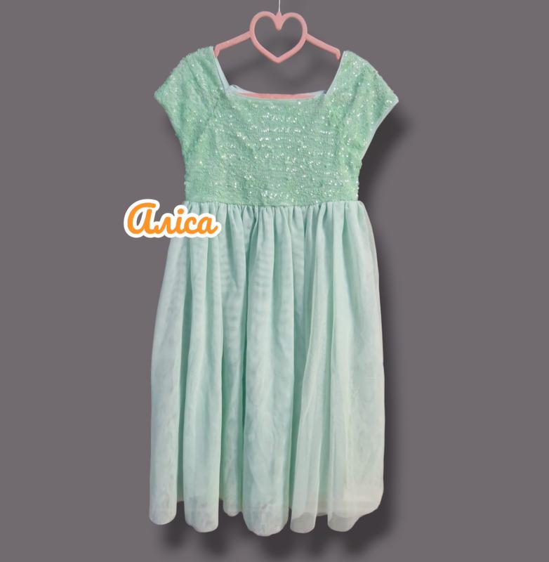Открытка укр или новой почтой☝️ Праздничное фатиновое платье мятного цвета с пайетками на 6 лет, размер 116 длина 79см, пог 30см, сзади есть молния