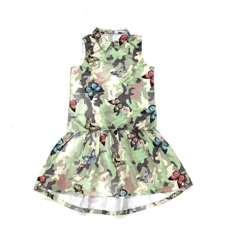 100% полиэстр Комуфляжне плаття для дівчинки, принт метелика, гарний комір