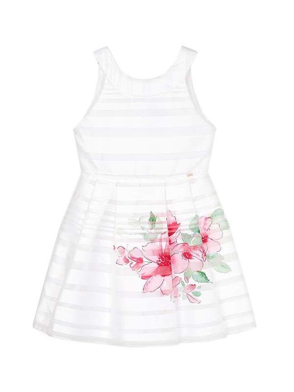 100%поліестер//підкладка:80%поліестер/20%бавовна легке плаття з коротким рукавом Mayoral білого кольору, яскравий принт квіток