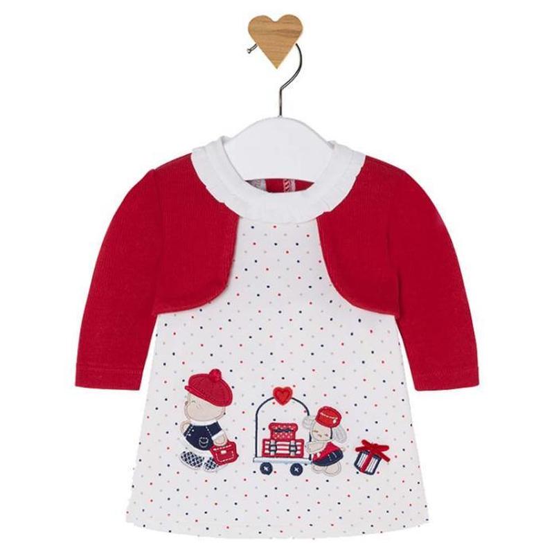 78%бавовна/18%поліестер/4%еластан/підкладка:50%бавовна/50%поліестер плаття з довгим рукавом для дівчинки Mayoral біло/червоного кольору в горошок