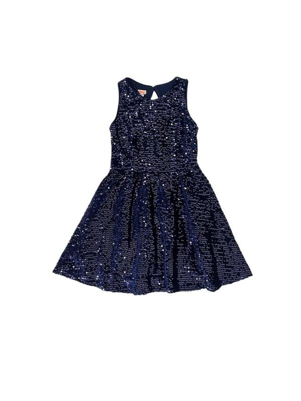 Плаття глибокого-синього кольору із широкими лямками, виріб повністю прикрашений паєтками. Склад: 95% поліестер, 5% еластан підкладка: 100% поліестер