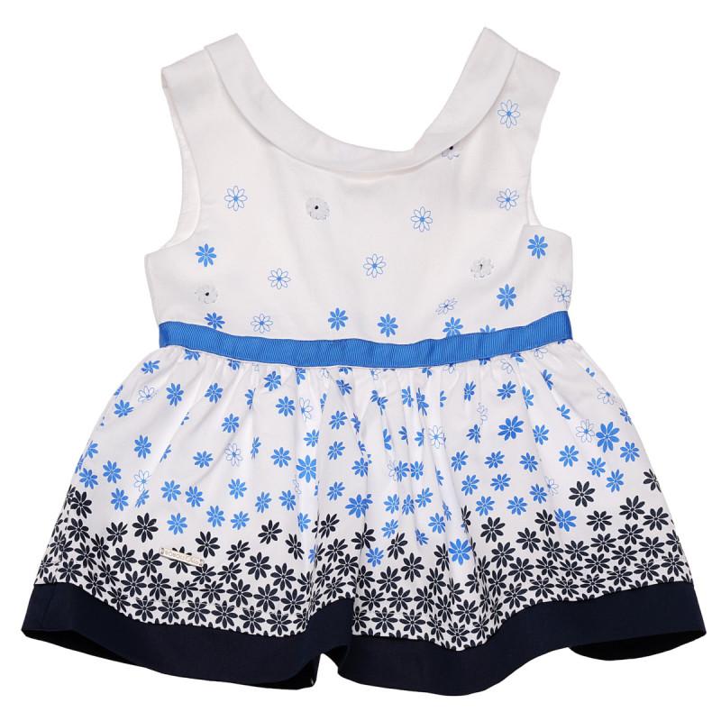 Сукня для дівчинки білого кольору, принт сині і чорні квіти. 100% бавовна